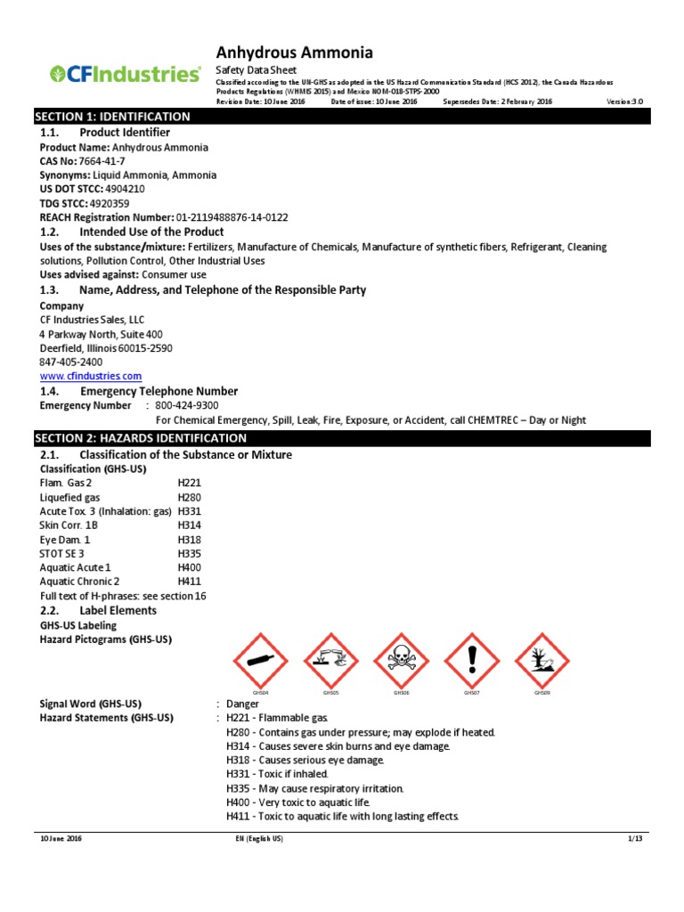 Sds For Anhydrous Ammonia PDF PDF Toxicity Ammonia, 52 OFF