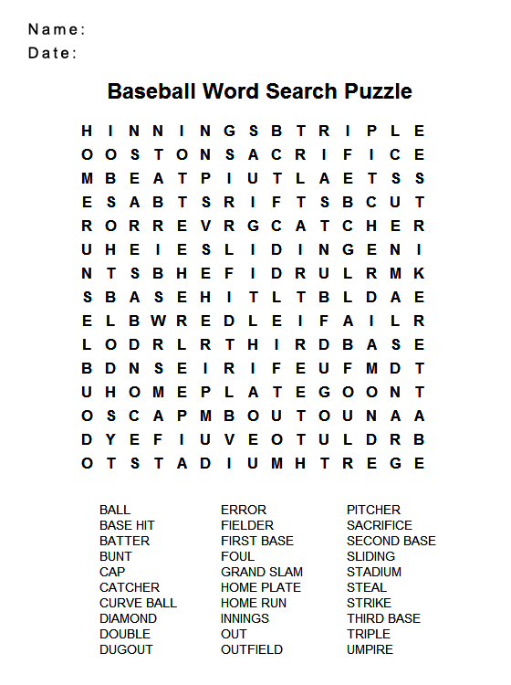 Baseball Word Search Free Printable Learning Ideas for Parents