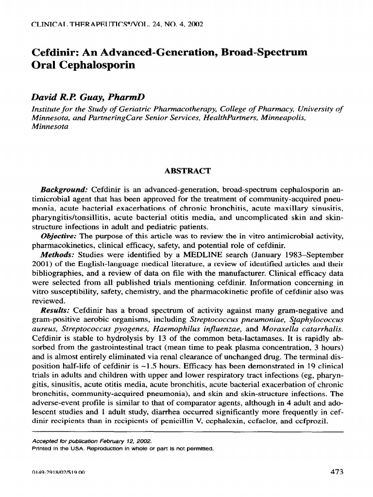 Guay2002 Cefdinir An Advanced Generation Broad Spectrum Oral