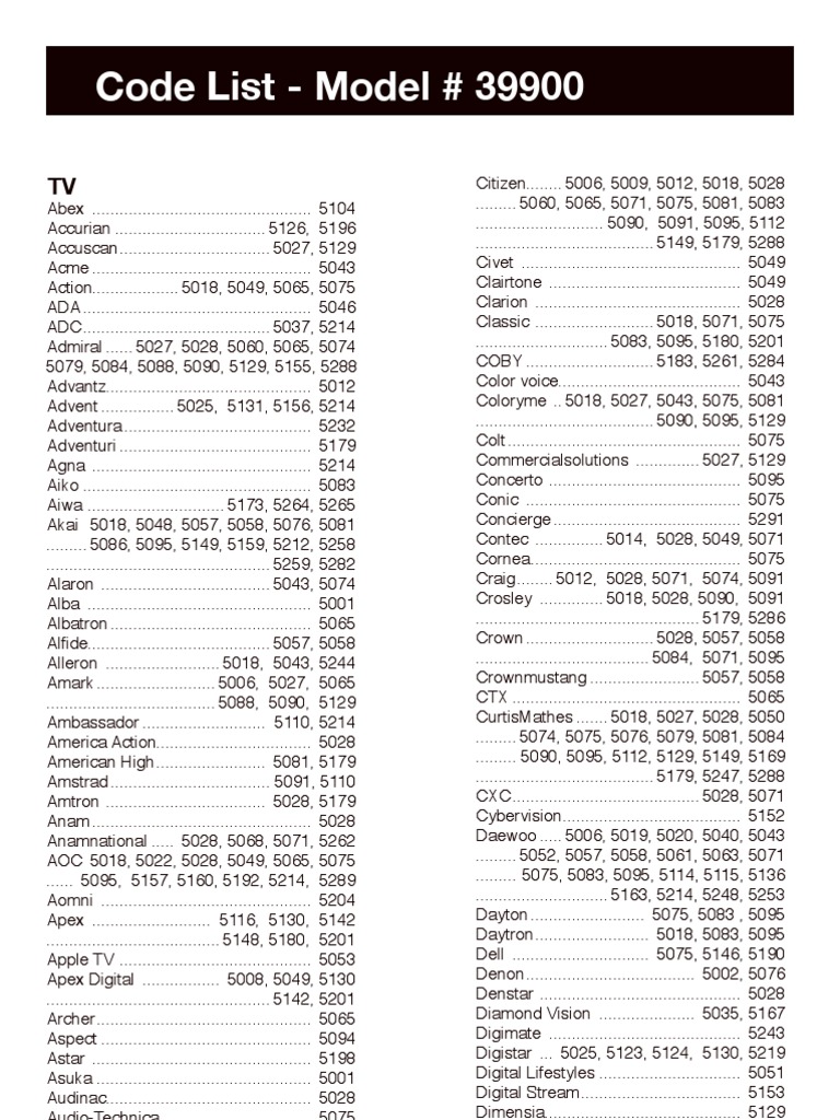 Onn 6 Device Universal Remote Code List