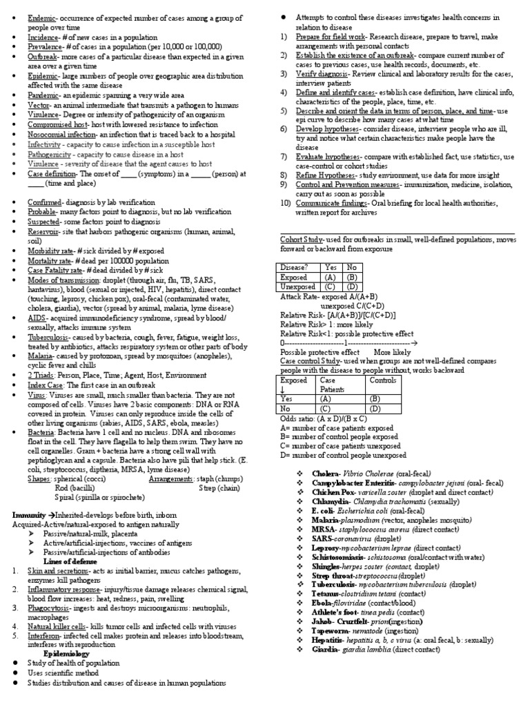 NC 2023 Science Olympiad disease detectives cheat sheet Cheat Sheet