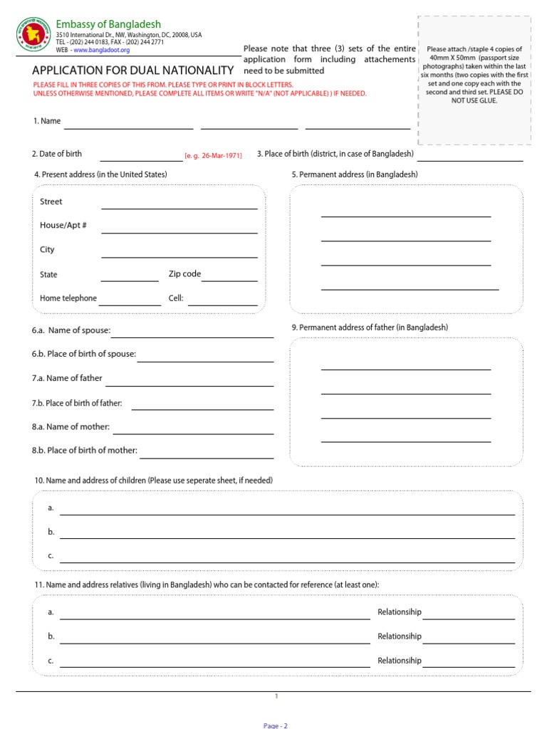 Fillable Dual Nationality Form Consulate General Of Bangladesh