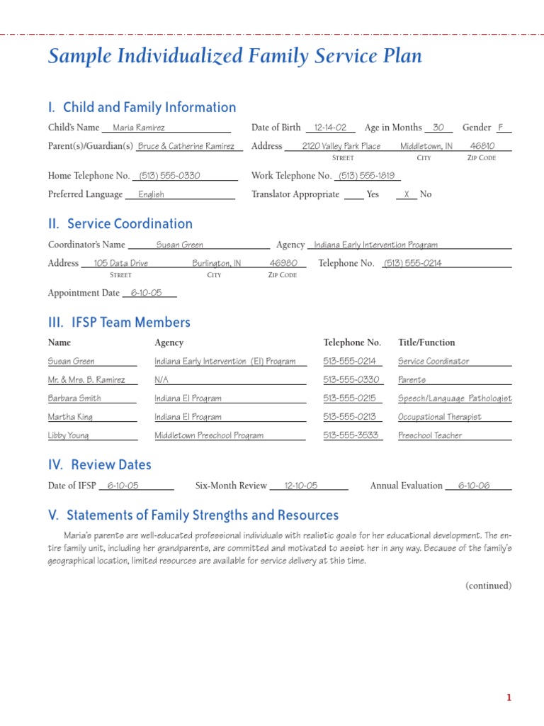 Individualized family service plan child's name: Tara test ifsp meeting date: This document accurately reflects our (my) concerns and priorities for our (my) child and. Sample individualized family service program.pdf. In the development of our (my) son’s/daughter’s ifsp.