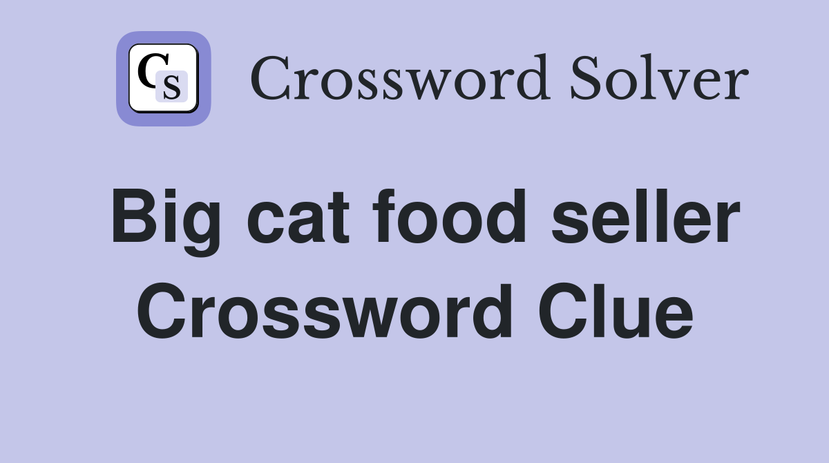 Big cat food seller Crossword Clue Answers Crossword Solver