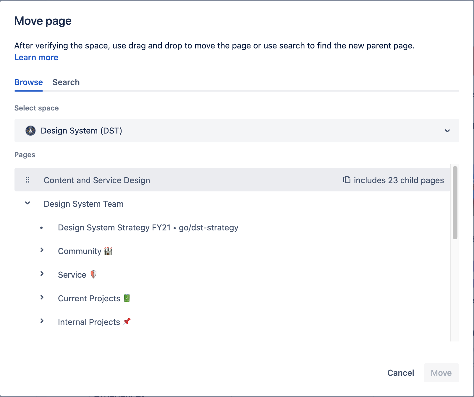 Move, copy, and hide content items Confluence Cloud Atlassian Support