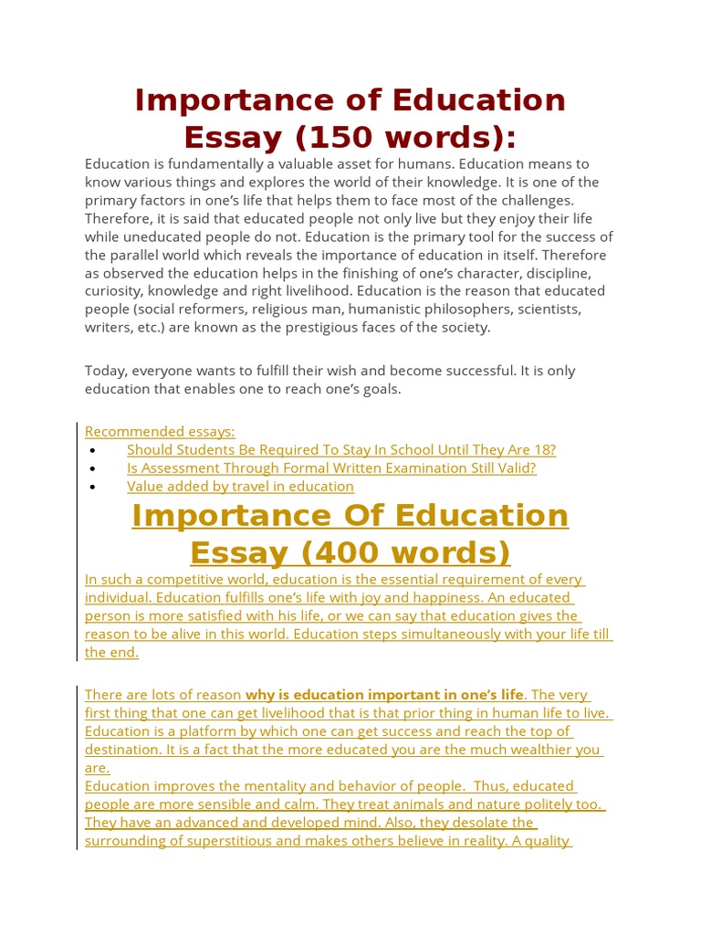 Essay On Importance Of Education (150 Words) In This World, It Is Important For Everyone To Have A Good Education.