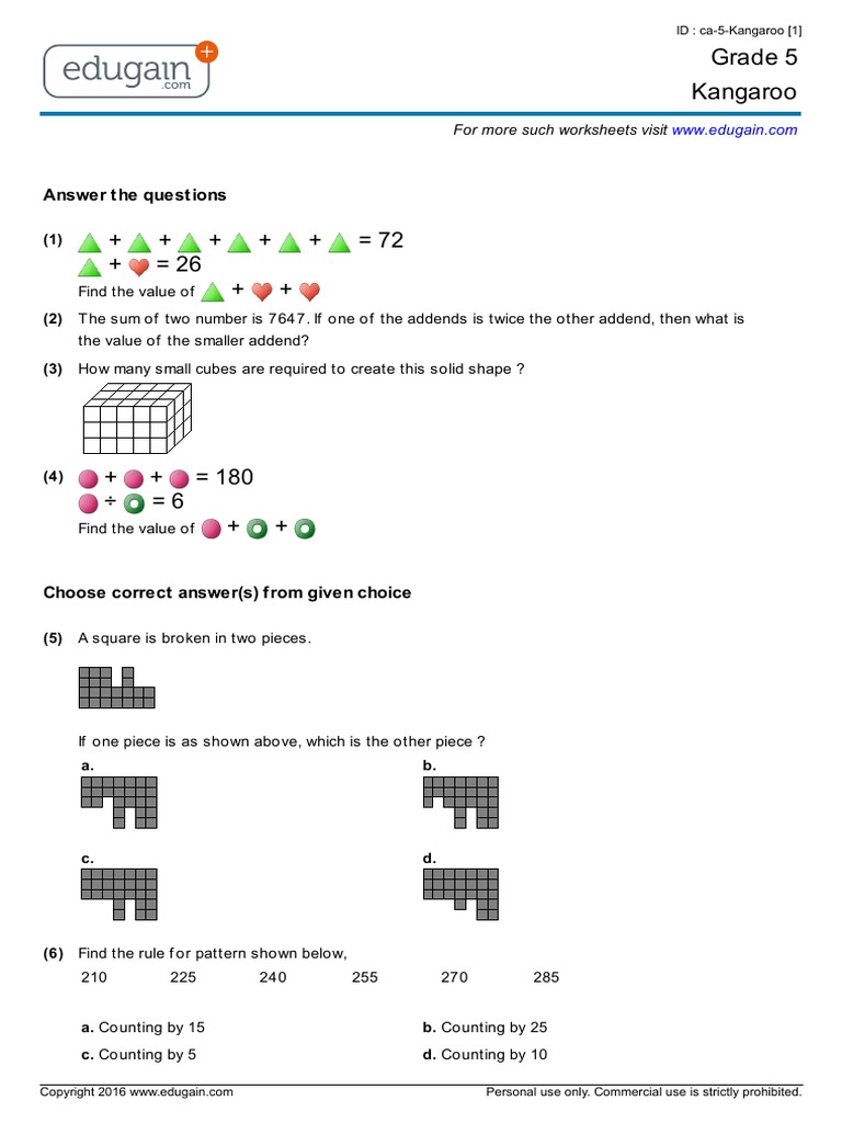 Math Kangaroo Past Papers 20172021 Questions to Help Kids Love