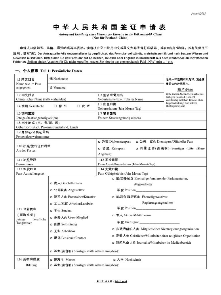 Visa Application To China Fill Online, Printable, Fillable, Blank