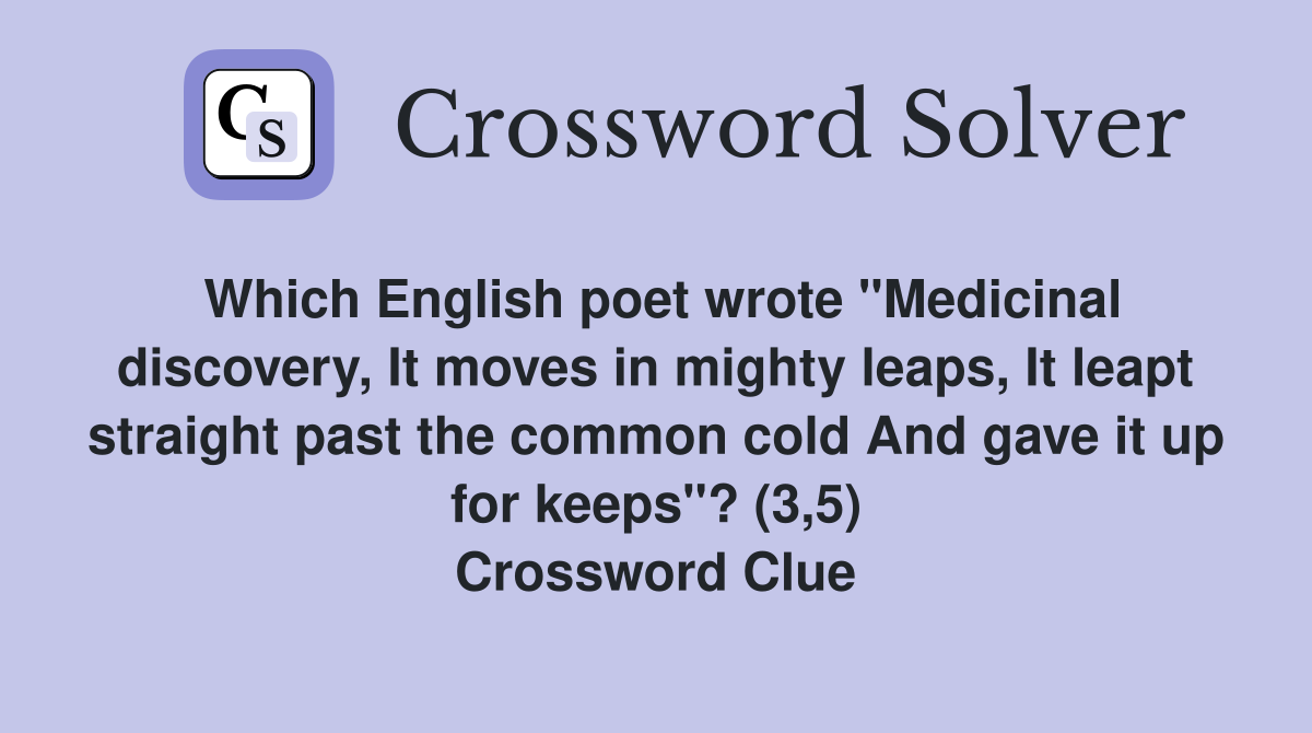 The crossword solver finds answers to classic. The answer we have on file for poet w.h. The crossword solver finds answers to classic. It was last seen in the usa today quick crossword.