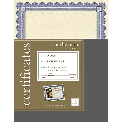 Southworth Certificates, 8.5" x 11", Ivory, 15/Pack (CT1R) Staples