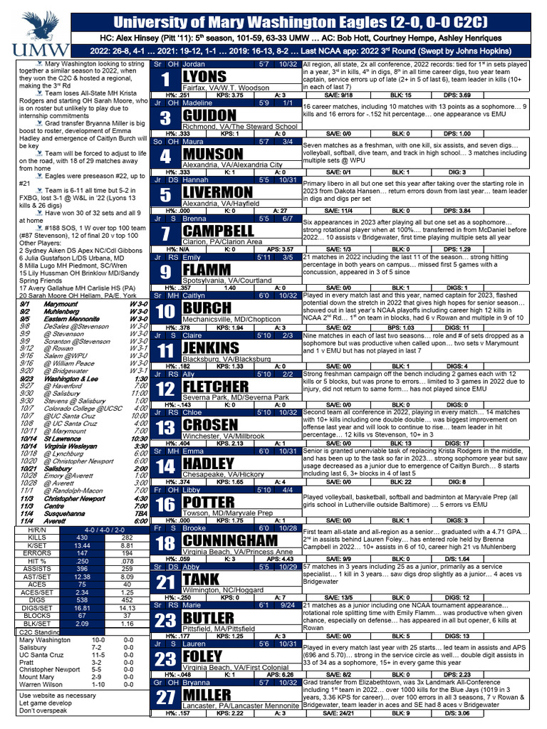 The official 2024 women's volleyball roster for the university of mary washington Get a personalized list of events in your inbox with our digest emailer. Share your event with our community by. Head coach / senior woman leader: View the university of mary washington women's volleyball fieldlevel page to see what athletes have been recruited to the program.