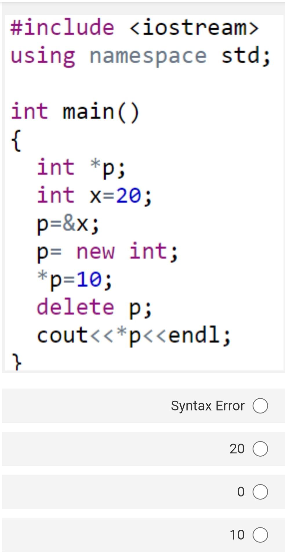 Solved include using namespace std; int main() { int* p;
