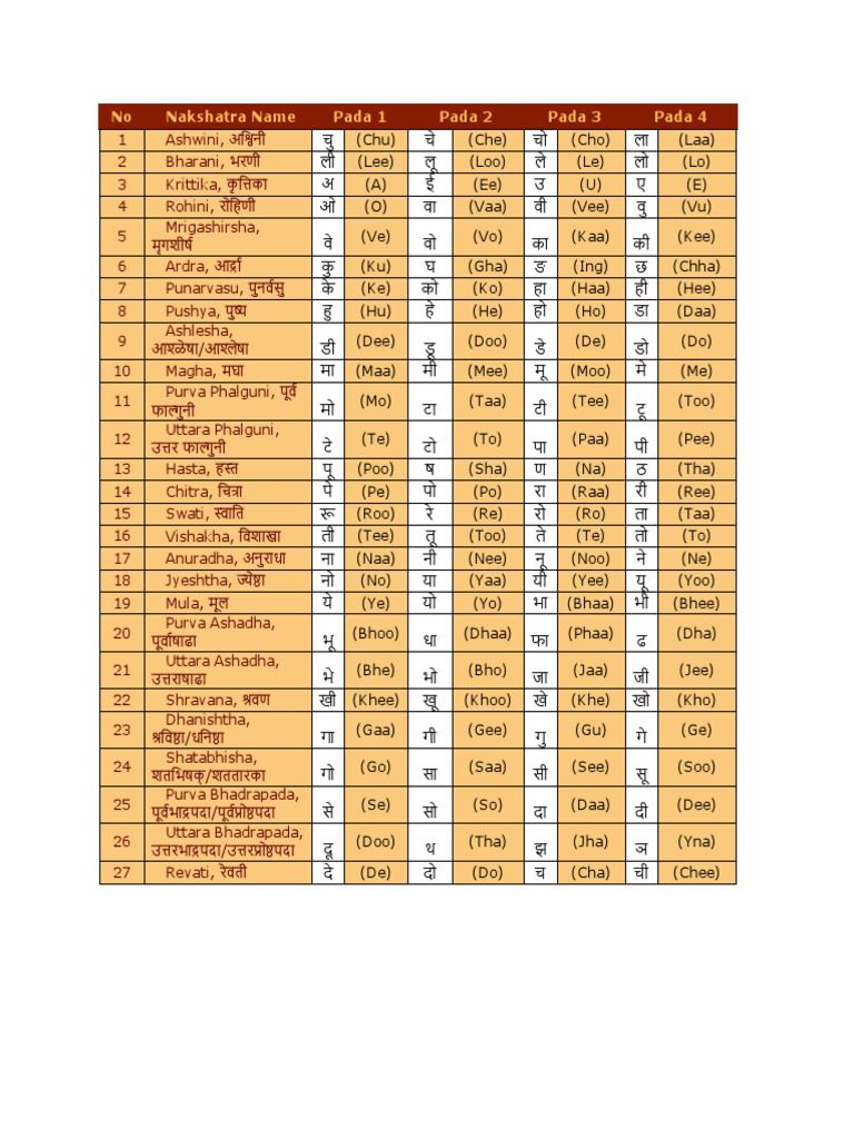 Nakshatra Name Letters PDF Astrology Technical Factors Of Astrology