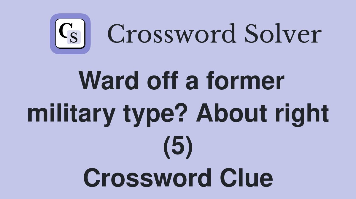 While searching our database we found 1 possible solution for the: Here is the answer for the: Please note that sometimes clues appear in similar. This crossword clue was last seen on november 19 2024 la times. The crossword solver found 30 answers to ward off 5 letters, 5 letters crossword clue.