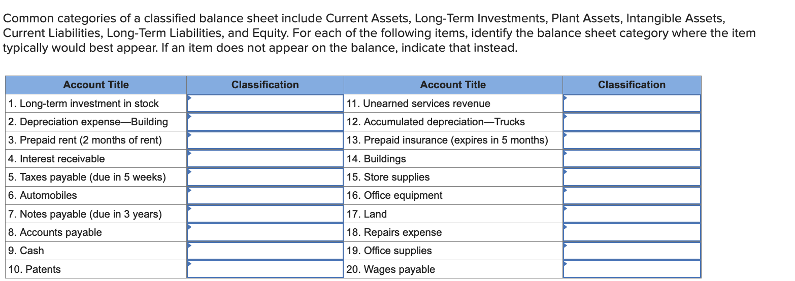 Solved Common categories of a classified balance sheet