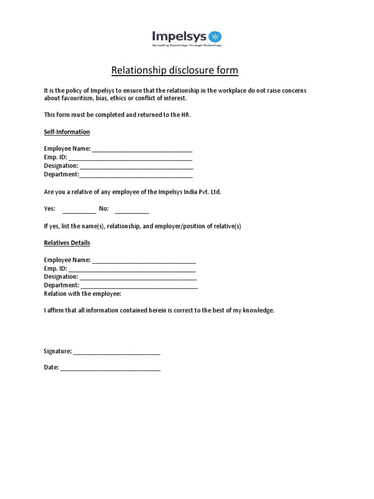 Work Relationship Disclosure Form PDF